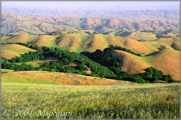 East Bay TrailPhoto Guides - Hidden Valley / Eagle Trails Rumpled, golden green hills roll to infinity at Mission Peak Regional Preserve East Bay Regional Park District (Also see this photo at: Flickr) * Hidden Valley / Eagle trails in Mission Peak Regional Preserve near Fremont. * Difficulty = Strenuous. Scenic value = 9 / 10. * This TrailPhoto Guide is under development. Please check back again for updates.