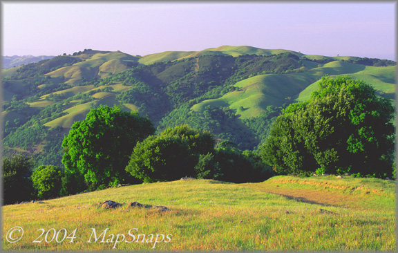 East Bay TrailPhoto Guides - Highland Ridge Trail One of many spectacular vantages from Highland Ridge in the Morgan Territory East Bay Regional Park District * Highland Ridge Trail in Morgan Territory Regional Preserve, Contra Costa County. * Difficulty = Strenuous. Scenic value = 10 / 10. * This TrailPhoto Guide is under development. Please check back again for updates.