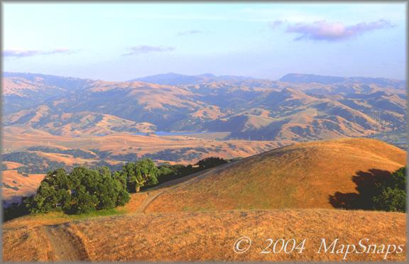 East Bay TrailPhoto Guides - Thermalito / Ridgeline Trails Expansive views on the descent from the ridgeline at Pleasanton Ridge Park East Bay Regional Park District * Thermalito / Ridgeline trail loop in Pleasanton Ridge Regional Park, near Pleasanton. * Difficulty = Moderate. Scenic value = 9 / 10. * This TrailPhoto Guide is under development. Please check back again for updates.