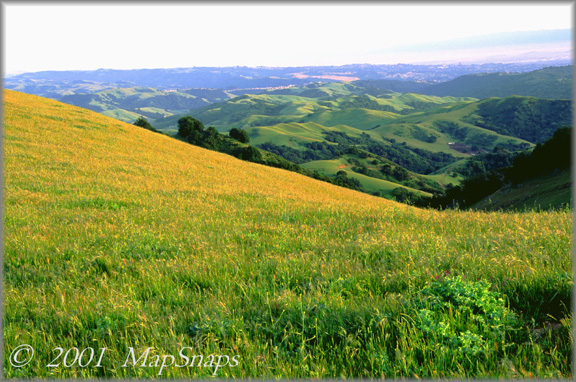 East Bay TrailPhoto Guides - Elderberry / Upper Ridge Trails Golden grass pouring downward from Upper Ridge Trail at Las Trampas Wilderness East Bay Regional Park District * Elderberry / Upper Ridge trails in Las Trampas Regional Wilderness, near Danville. * Difficulty = Strenuous. Scenic value = 9 / 10. * This TrailPhoto Guide is under development. Please check back again for updates.