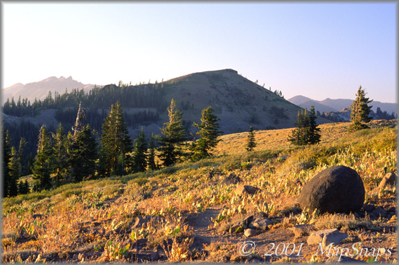 Tahoe TrailPhoto Guides - PCT South from I-80 The Pacific Crest Trail morphs into a field of gold with sunset coming, south of I-80 Tahoe National Forest (Also see this photo at: Flickr) or see Extra Large version of this photo in the TrailPhotos.com Gallery * Pacific Crest Trail South from I-80 in North of Lake Tahoe Area. * Difficulty = Moderate. Scenic value = 9 / 10. * This TrailPhoto Guide is under development. Please check back again for updates.
